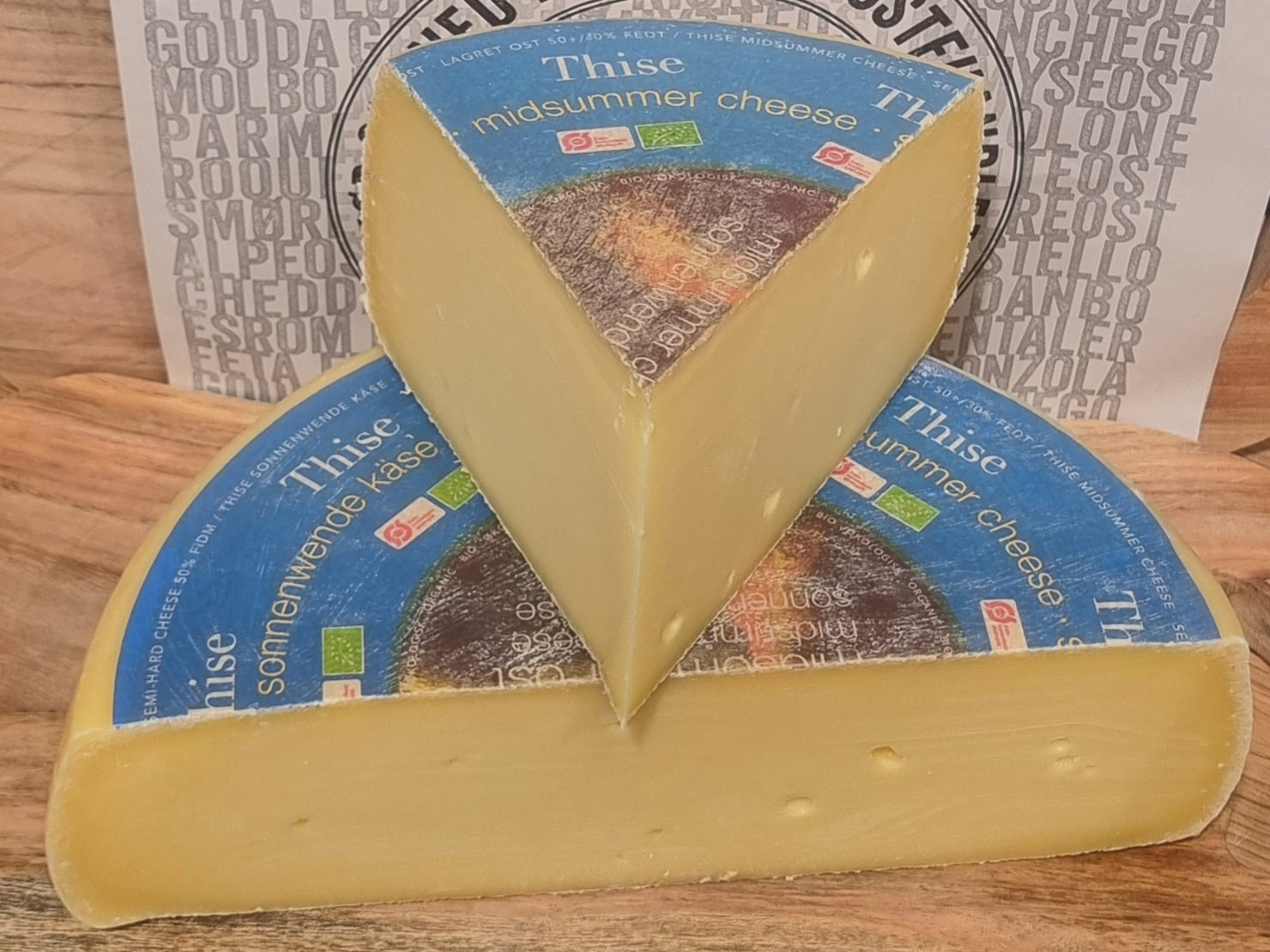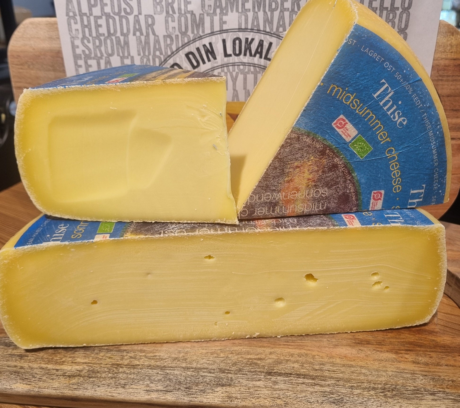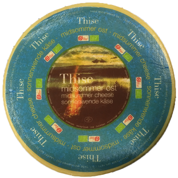 Midsommerosten fra Thise er en økologisk ost fyldig og let sødlig i smagen. Osten fremkommer med små krystaller og produceres kun én gang om året - nemlig omkring midsommer.