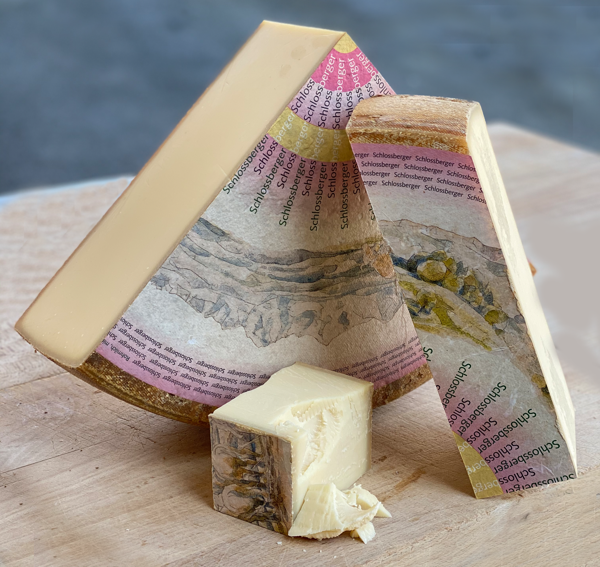Schlossberger, Schweizisk bjergost. Fast konsistens Lageret i klippeholer, hvilket giver en dybde og skøn kompleksitet..